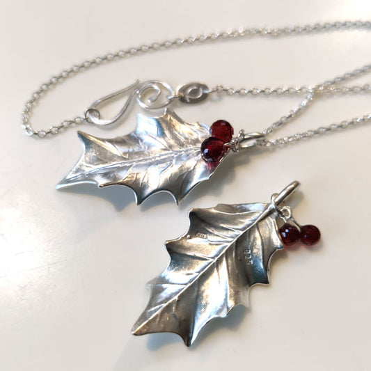 Large Holly Leaf with Garnet Berries in Sterling SilverRegular price £90.00 GBPRegular priceUnit price / per£90.00 GBPSale price £90.00 GBP