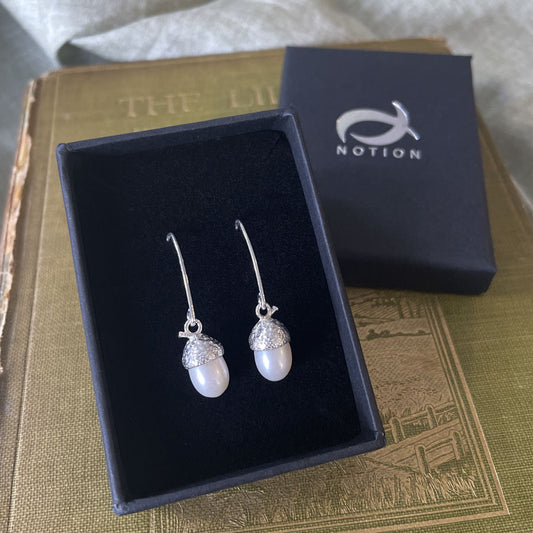 Sterling Silver Pearl Acorn Earrings